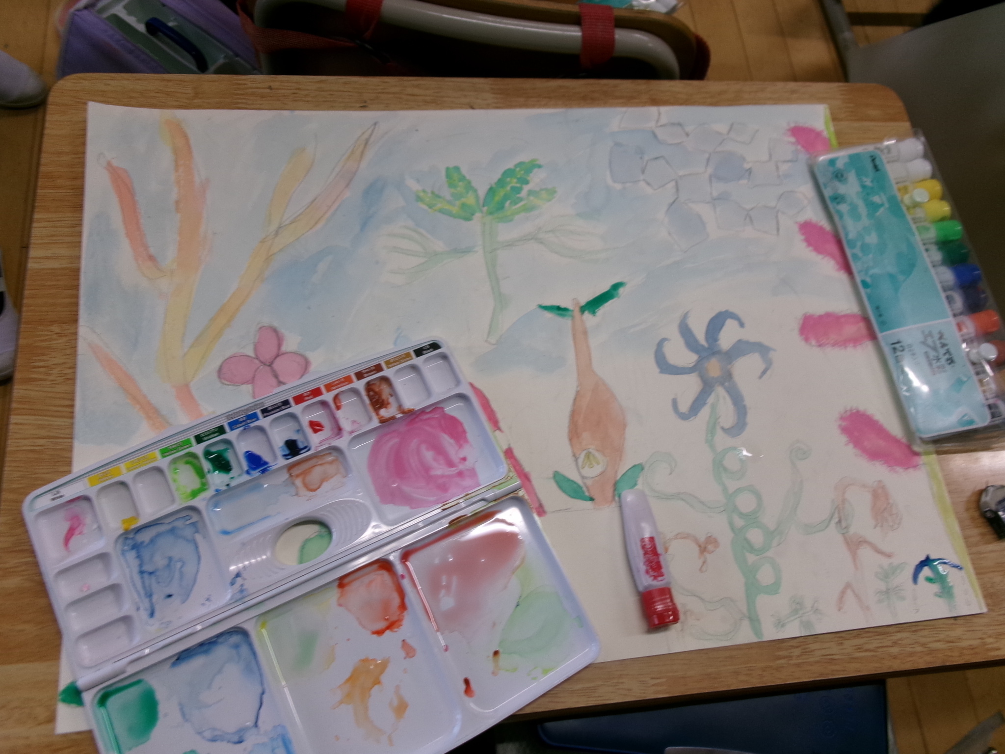 5年生水彩画「まだ見ぬ世界」色使いがいいなあ