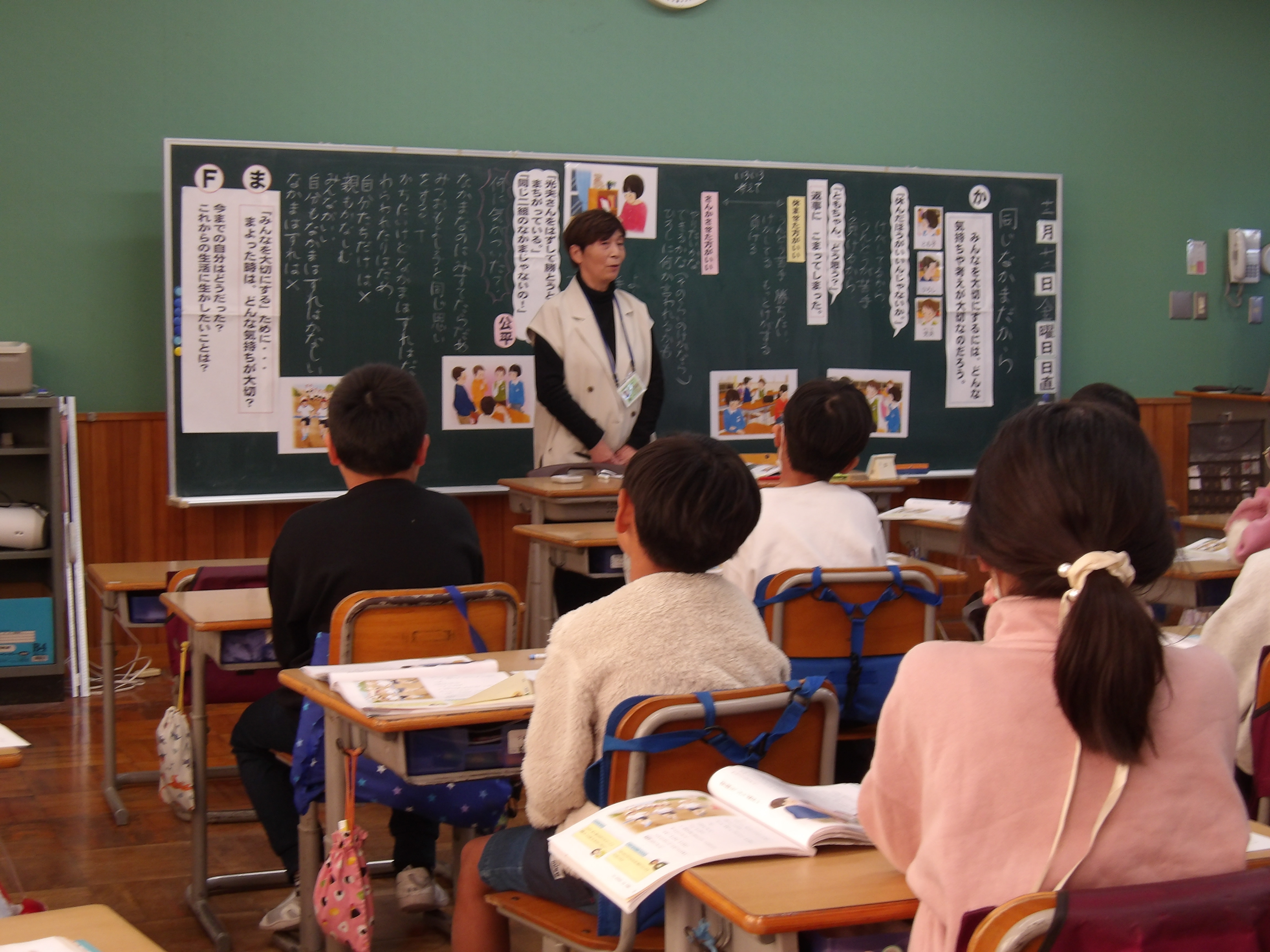人権擁護委員の皆様がご来校され、3年生と6年生の道徳の授業を参観されました。