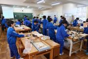 午後の技術の授業で、かんなやのこぎりを使って作業している組もありました。