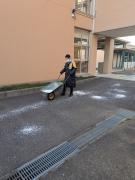 降雪の予報が出ていたため、事前に教職員が融雪剤を散布しました。