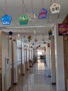 3年生の廊下には美術の時間に作成した合格祈願の絵馬が飾られています。