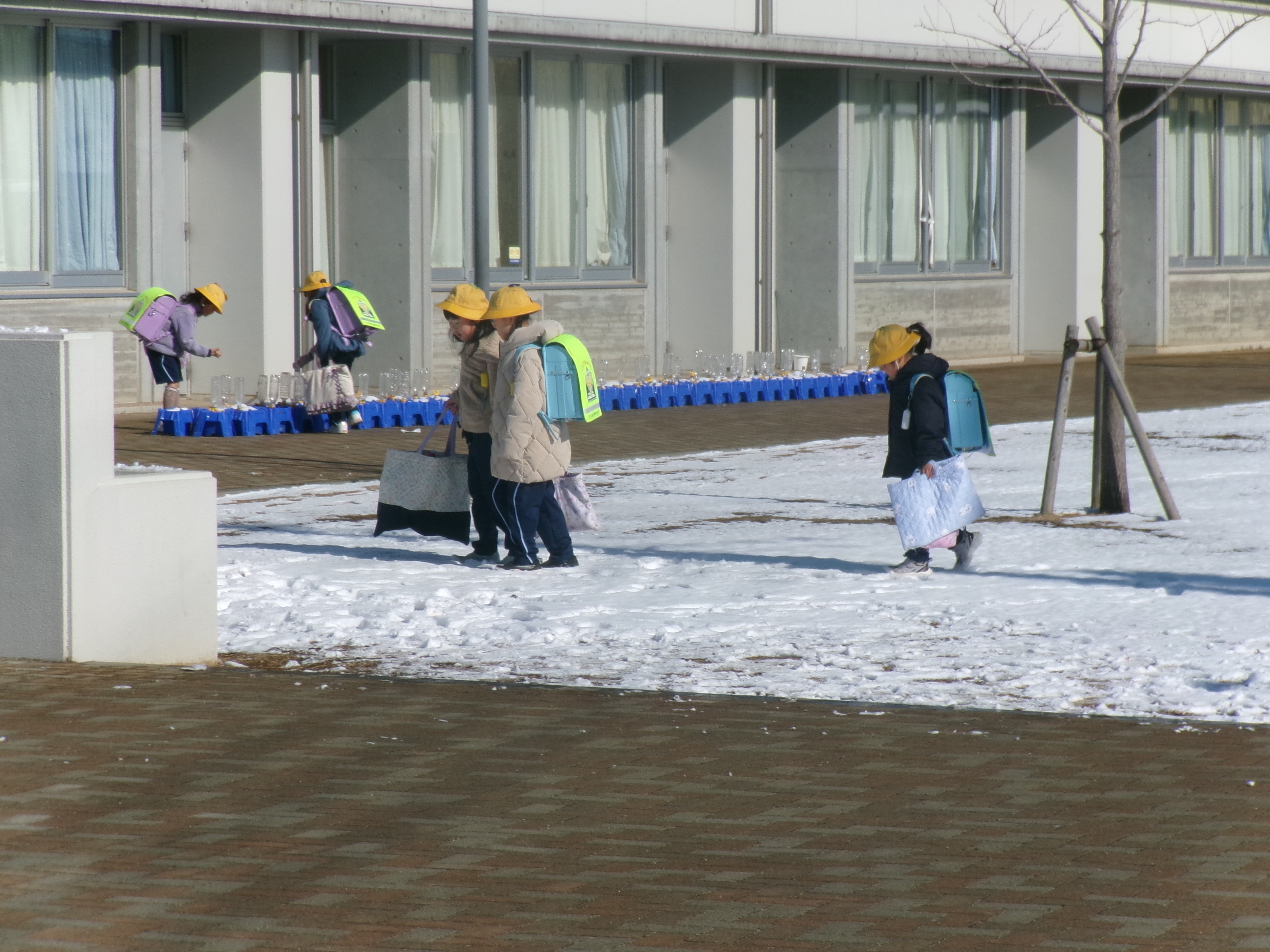 あさひ小学校も辺り一面 雪化粧