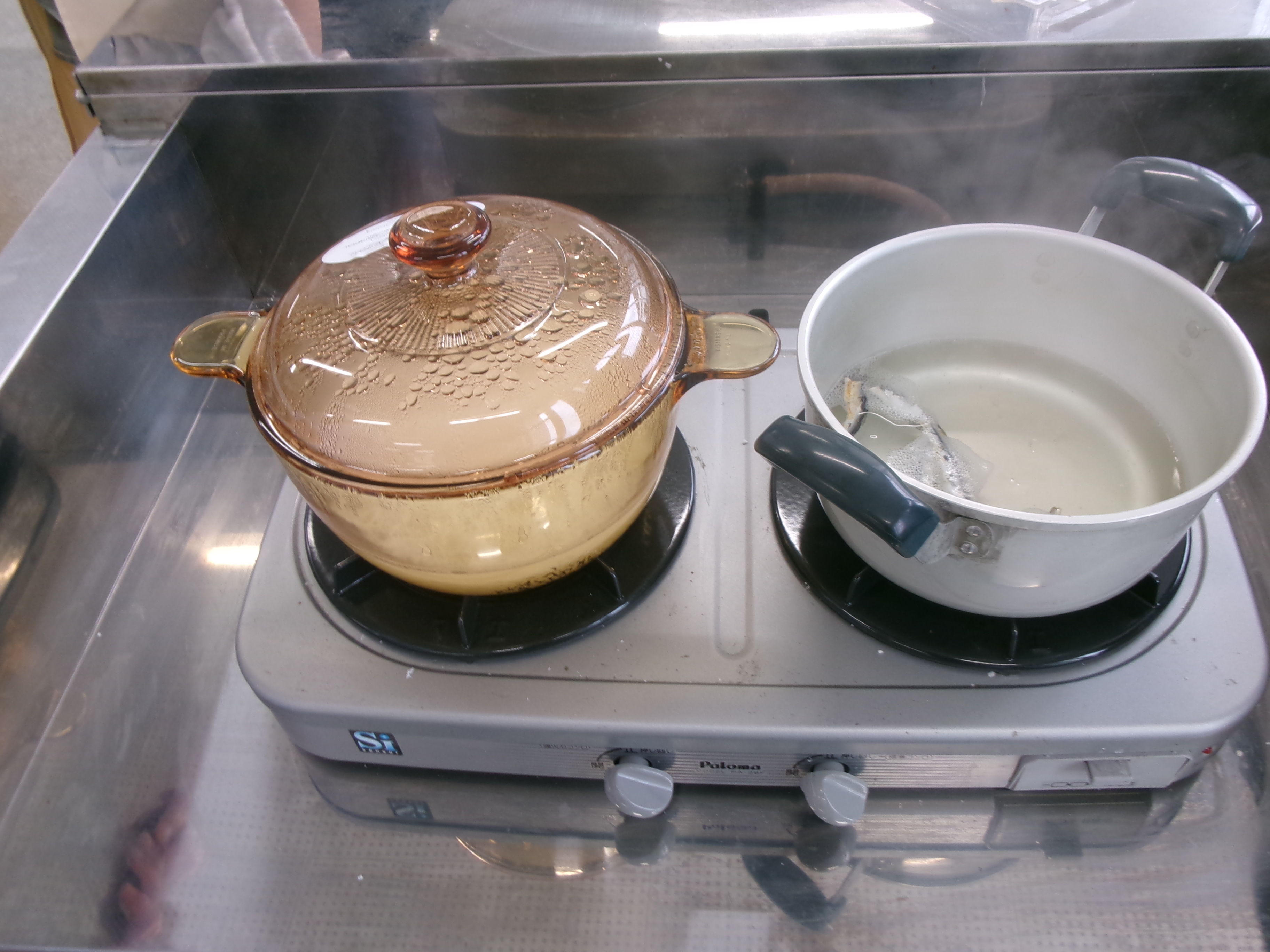 ご飯は、透明の鍋を