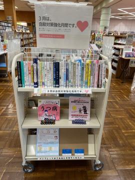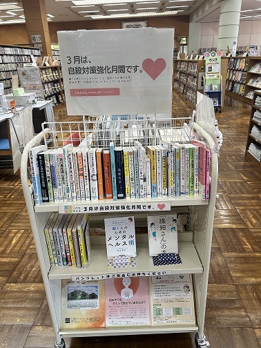 阿見町では、「自殺対策強化月間」にあわせて、図書館と連携し、3月の特集として、自殺対策に関する図書の展示を実施しました。