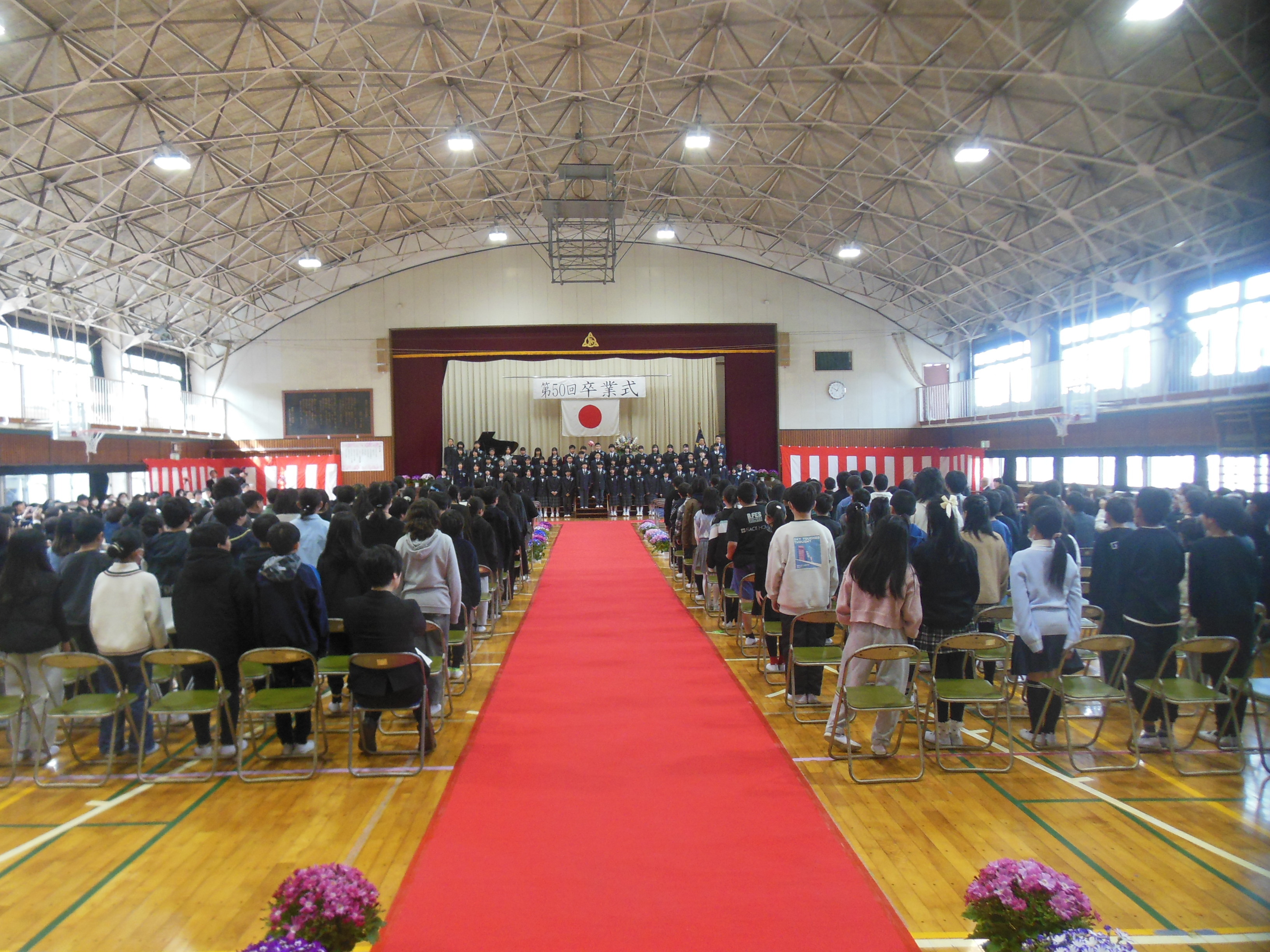 3月13日(金曜日)、さわやかな天候の中、第50回卒業式が盛大に行われました。たくましく成長した6年生の姿、心を込めて6年生を送り出そうとする4、5年生の姿が見られました。感動的な卒業式となりました。