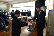 修了式のあとは学活があり、生徒に通知表が渡されました。