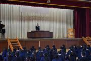 始業式では、代表生徒2名の作文発表があり、一人一人の生徒が真剣な態度で聞くことができました。