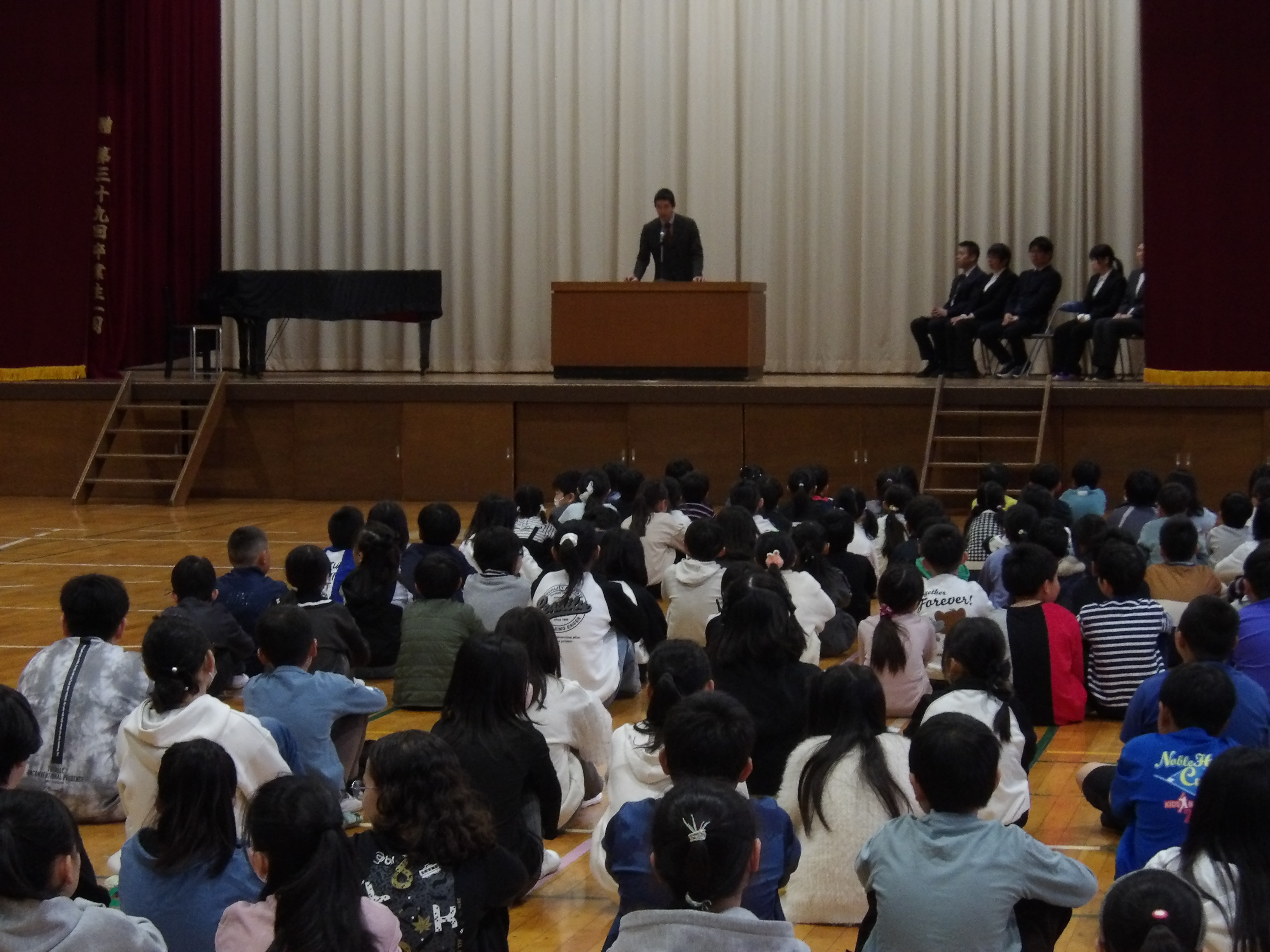 4月7日(火曜日)、新しく7名の先生を迎え、新任式・始業式を行いました。子どもたちは気持ちを新たに、新しく来た先生方、校長先生の話をじっくりと聞いていました。担任発表の際、子どもたちの目はとてもきらきら輝いていました。