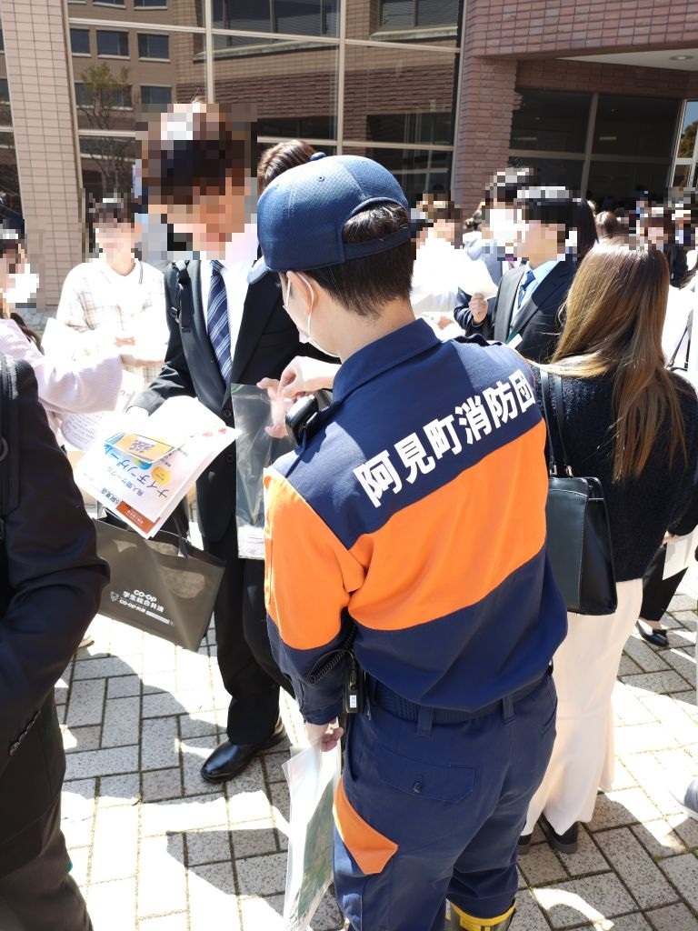 令和8年4月3日(金曜日)県立医療大学にて消防団員の勧誘活動を行いました。