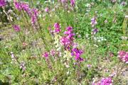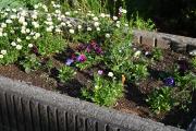 職員玄関の花壇では花がたくさん咲き、鮮やかな彩りを添えていました。