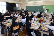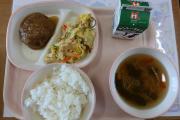 今日の給食は、人気メニューのハンバーグでした。たくさんの生徒がおかわりのジャンケンに参加していました。