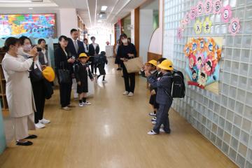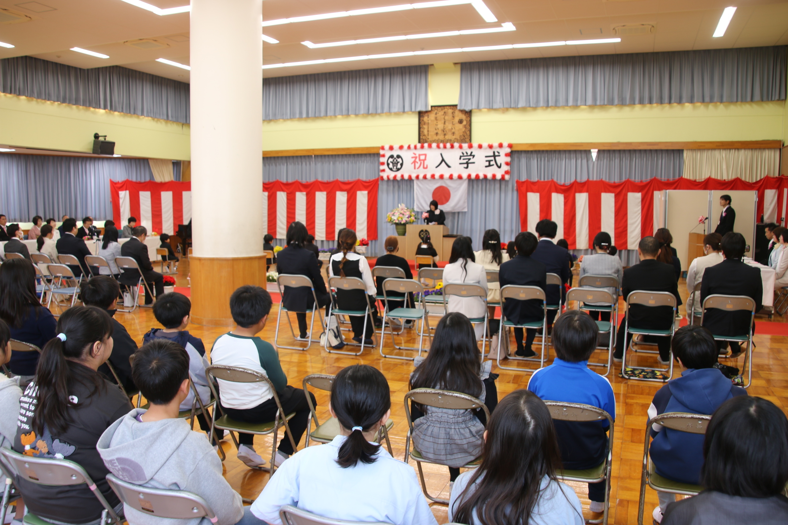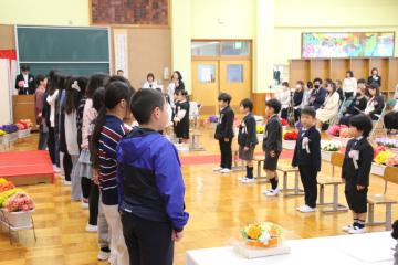 在校生を代表して5・6年生が参列し、入学式を行いました。
